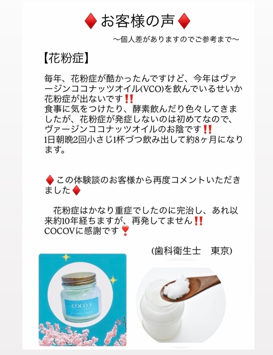 ✴︎花粉症なんですが、鼻の穴にCOCOVを塗り続けています。随分楽になりました。